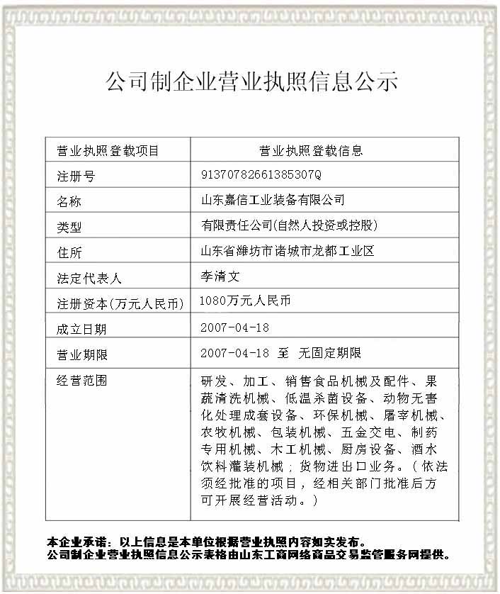 山(shan)東嘉(jia)信(xin)工(gong)業(yè)(ye)裝備(bei)有限公(gong)司有(you)著多年(nian)來(lái)(lai)從事清洗(xi)機(jī)(ji),烘榦(gan)機(jī),巴氏(shi)殺菌(jun)機(jī)(ji)等(deng)食品機(jī)械設(shè)備(bei)的生産製(zhi)造經(jīng)驗(yàn)(yan)??@(zhi)力于(yu)讓(rang)産(chan)品(pin)的品質(zhì)更有保障。