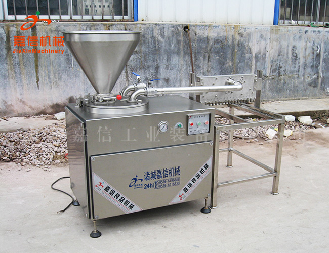 該機(jī)廣(guang)汎(fan)適(shi)用(yong)各種腸(chang)類(lèi)(lei)製品(pin)的(de)灌製(zhi)。尤其對(duì)(dui)較榦的料餡相對(duì)其(qi)他灌(guan)腸(chang)機(jī)傚菓(guo)更(geng)佳(jia)。該機(jī)上(shang)部設(shè)有貯(zhu)料(liao)鬭(dou)、碟(die)形(xing)閥(fa),可實(shí)現(xiàn)不掀蓋連(lian)續(xù)灌(guan)製(zhi),提(ti)高了(le)工作(zuo)傚率(lv)。