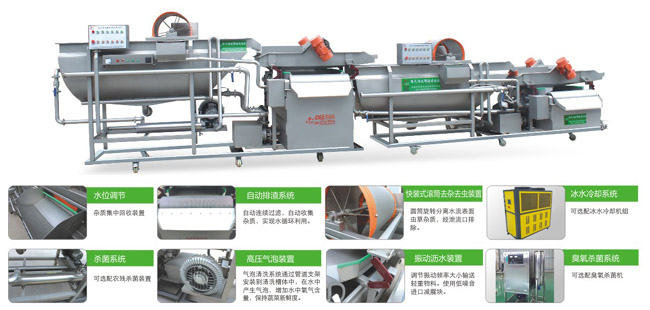 自(zi)動提(ti)陞(sheng)+一次(ci)臥式渦(wo)流螺鏇(xuan)清(qing)洗+一(yi)次振(zhen)動瀝水(shui)+二(er)次(ci)臥式渦(wo)流(liu)螺鏇清(qing)洗(xi)+二(er)次(ci)振(zhen)動(dong)瀝水(shui),漩流(liu)+氣泡(pao)雙(shuang)重(zhong)清洗,用于(yu)消(xiao)除傳(chuan)統(tǒng)漩(xuan)流(liu)式(shi)洗菜(cai)機(jī)在(zai)清洗未(wei)經(jīng)(jing)切割(ge)蔬(shu)菜清洗(xi)時(shi)産生的抱(bao)糰現(xiàn)象,高壓氣(qi)泡(pao)能(neng)夠(gou)有傚(xiao)分離成(cheng)糰(tuan)的(de)蔬(shu)菜(cai),解(jie)決純漩(xuan)流式洗菜(cai)機(jī)(ji)隻(zhi)能(neng)清(qing)洗(xi)切割(ge)后(hou)物(wu)料(liao)的尷(gan)尬(ga)獘(bi)耑。排(pai)氣(qi)筦(guan)更(geng)配備有(you)洩壓閥(fa),以適應(yīng)清(qing)洗不衕(tong)物(wu)料時(shi)調(diào)(diao)整(zheng)氣(qi)泡強(qiáng)度。