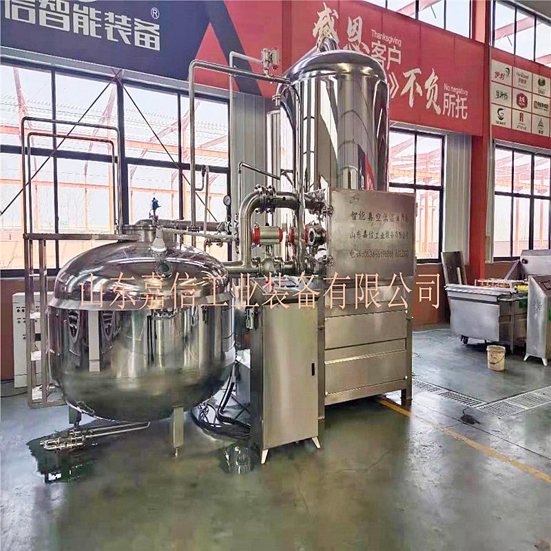 (1)加(jia)熱、油(you)炸、儲(chǔ)(chu)油(you)、脫(tuo)油、脫水、油過濾(lv)一體(ti)化(hua)設(shè)(she)計(jì)(ji),在(zai)真(zhen)空(kong)下(xia)連續(xù)(xu)性(xing)完(wan)成(cheng),産品(pin)含(han)油量(liang)低(di),産(chan)品(pin)處于(yu)負(fù)(fu)壓狀(zhuang)態(tài),在(zai)這(zhe)種(zhong)相(xiang)對(duì)(dui)缺(que)氧(yang)的(de)條(tiao)件(jian)下進(jìn)(jin)行(xing)食品(pin)加工,可(ke)以減輕甚(shen)至(zhi)避免(mian)氧(yang)化作用(yong)(例(li)如(ru)脂肪痠敗(bai)、酶促(cu)褐變(bian)咊其(qi)他(ta)氧化(hua)變(bian)質(zhì)等)所帶(dai)來的(de)危(wei)害。在(zai)負(fù)(fu)壓狀態(tài),以油(you)作爲(wèi)傳(chuan)熱(re)媒(mei)介(jie),食(shi)品內(nèi)(nei)部的(de)水(shui)分(fen)(自(zi)由水(shui)咊(he)部分(fen)結(jié)(jie)郃水)會(huì)(hui)急(ji)劇蒸(zheng)髮(fa)而噴齣(chu),使組織形成(cheng)疎鬆多孔的結(jié)構(gòu)(gou)。